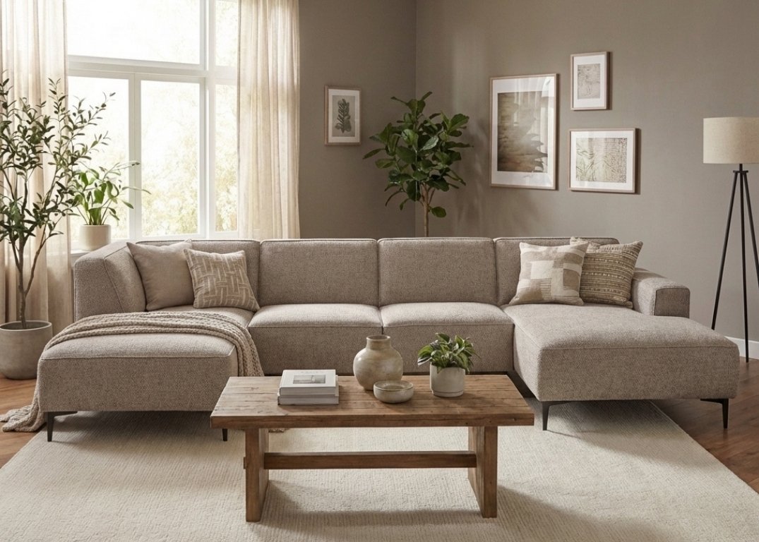 Deze stijlvolle U-bank combineert modern design met optimaal comfort en is perfect voor een ruime, gezellige woonkamer. De zachte bekleding, royale zitplaatsen en comfortabele kussens maken deze bank ideaal voor ontspannen momenten met het hele gezin. Dankzij de strakke lijnen en tijdloze uitstraling past deze U-vormige bank moeiteloos in diverse woonstijlen, van modern tot Scandinavisch.